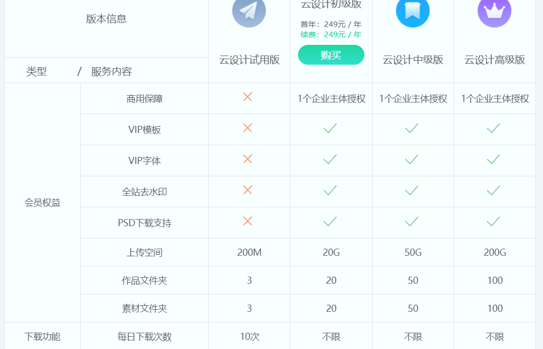 一、先盯商用授权:乔拓云全场景覆盖,同行多限 “个人用途”选在线设计平台,第一要务是 “商用安全”。之前有个做母婴用品的客户,一开始用某平台的免费版做产品主图,以为 “能下载就能商用”,结果用了 3 个月收到版权投诉,说字体只有个人授权,商用要补 1200 元授权费,最后不仅换图,还赔了 5000 元,别提多糟心了。 后来帮他对比平台时发现,很多同行都有 “授权陷阱”:Canva 可画基础版标注 “个人非商用免费”,想商用得花 399 元升级会员,而且部分热门模板还要额外付 “商用版权费”;创客贴免费版只能做个人分享图,商用必须买 299 元 / 年的会员,还限制 “单账号年商用次数不超过 50 次”;而乔拓云初级版 249 元 / 年,不管是做产品包装、线下展会海报,还是电商详情页、公众号推文图,所有模板和字体都给全场景商用授权,没有 “个人 / 商用” 的限制。客户用乔拓云做了 4 套母婴产品宣传图,从包装设计到社群推广图全涵盖,特意让法务查了授权协议,确认 “无任何商用限制”,这才彻底放下心来。 二、再算价格性价比:4 年 498 元用全功能,同行一半功能都得加钱